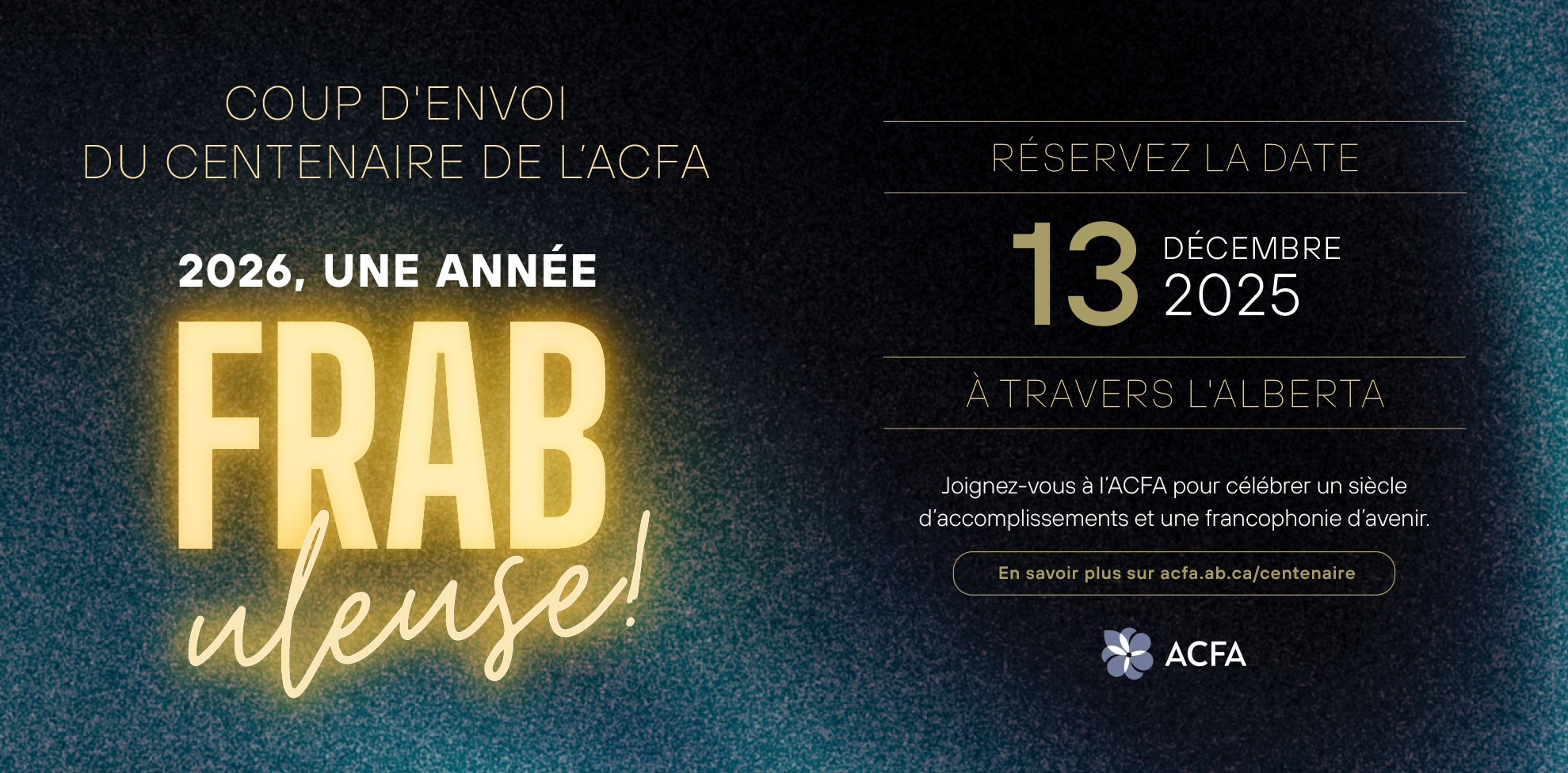 Partout en Alberta, l’année 2026 s’ouvrira sous le signe du rassemblement, de la mémoire et de la fierté francophone. Pour marquer le lancement officiel de son Centenaire le 13 décembre, l’ACFA Provinciale et les ACFA régionales organisent une série d’événements qui réuniront francophones et francophiles d’un bout à l’autre de la province.
